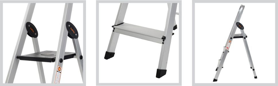 - Bathla Advance Carbon - 3 Step Foldable Aluminium Ladder For Home (Black)